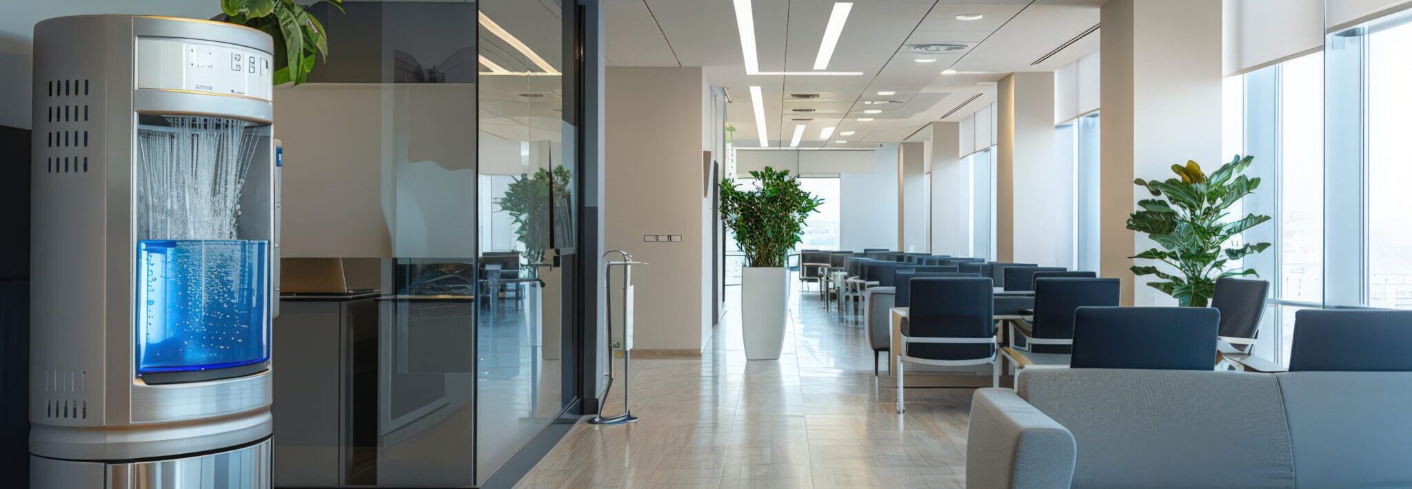 Ein Festwasserspender wird direkt an die Wasserleitung angeschlossen und sorgt für eine konstante Versorgung mit frischem Wasser. Das integrierte Filtersystem reinigt das Leitungswasser und liefert sauberes Trinkwasser. Diese Variante eignet sich besonders für größere Büros oder Einrichtungen, in denen eine permanente Wasserversorgung erforderlich ist.